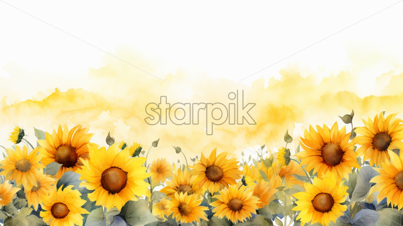 A string of sunflowers in watercolor in clipart style