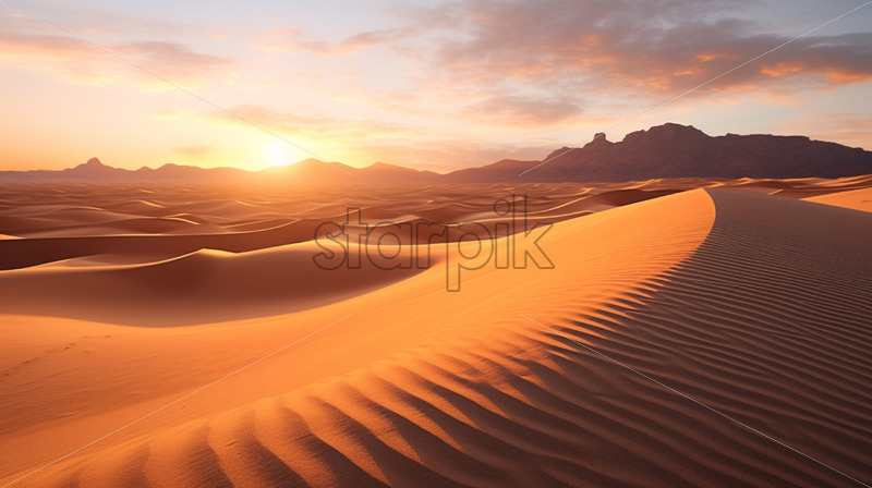 A breathtaking sunset casting golden hues over the vast desert expanse