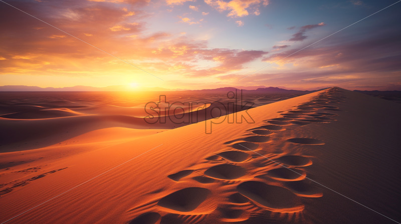 A breathtaking sunset casting golden hues over the vast desert expanse