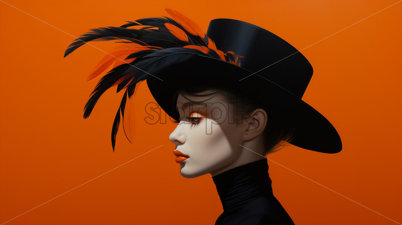 Home » Shop » Uncategorised » A stylish woman with a hat with orange feathers