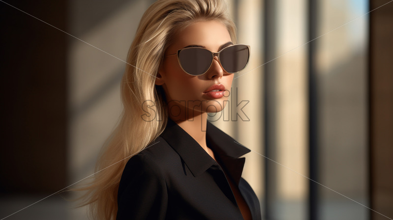 Caucasian smiling woman in sunglasses with view of Barcelona on the background, Spain