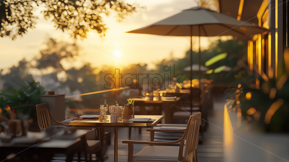 a summer terrace with warm sun light