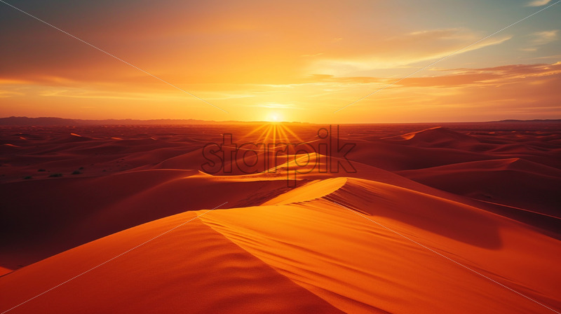 Vast sand dunes stretching to the horizon under the scorching sun