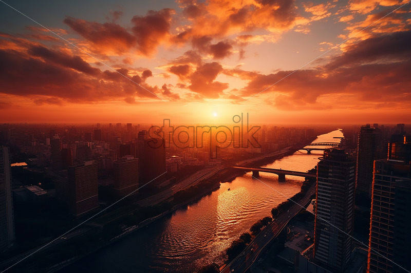 Beautiful sunset in Chisinau town. Warm light reflecting on buildings. Purple blue sky on background. Negative copy space, place for text. Moldova beauties Royalty Free Stock photo