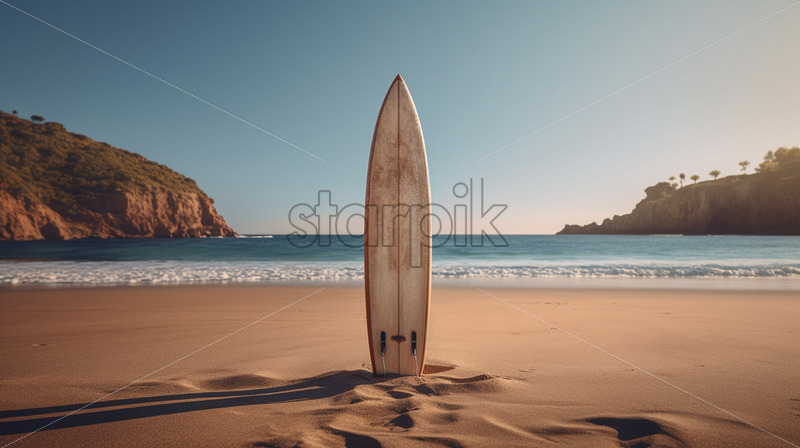 Home » Shop » Uncategorised » A surfboard embedded in the sand