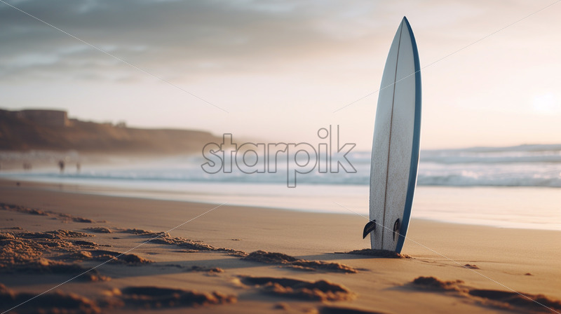 Home » Shop » Uncategorised » A surfboard embedded in the sand