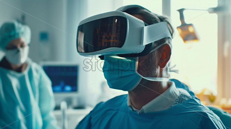 A cute girl having a virtual meeting with their colleagues in Vr glasses