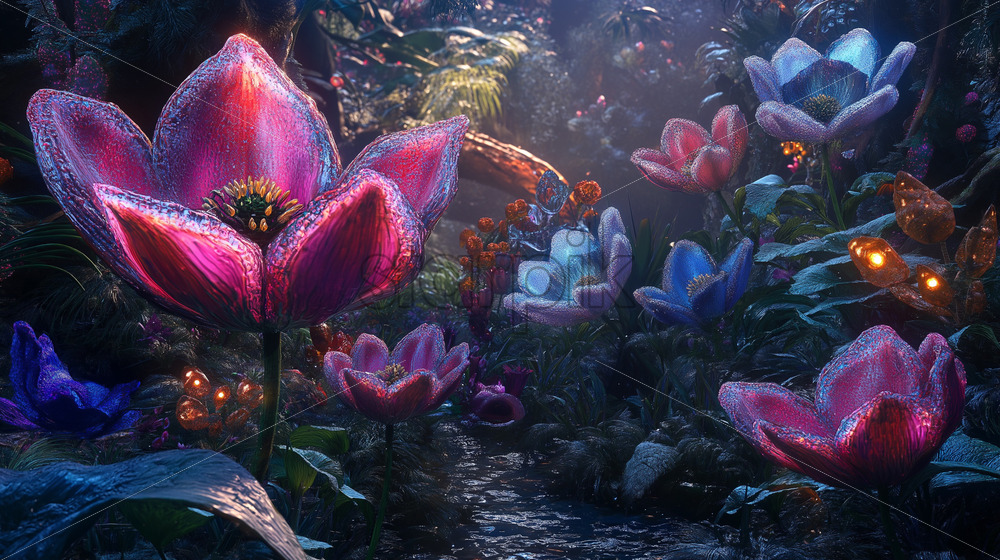 Home » Shop » AI Illustration » A surreal garden filled with oversized flowers, vibrant colors