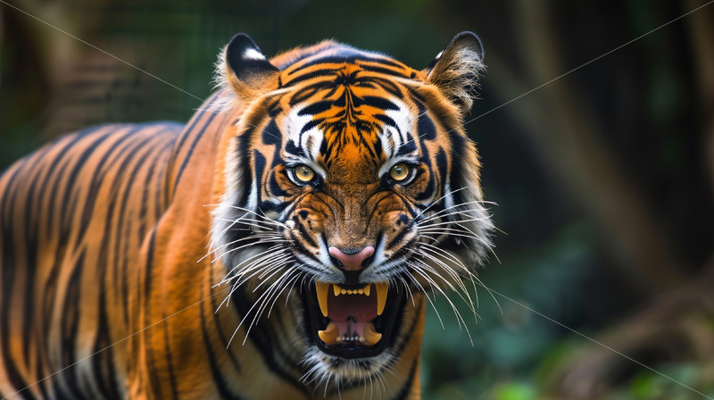 Massive and powerful Bengal tiger, its golden fur shimmering in the dappled sunlight