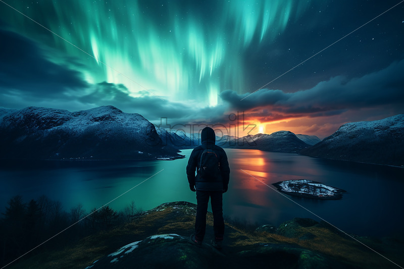 Caucasian woman in blue dress touching pink tree flowers in Barcelona, Spain