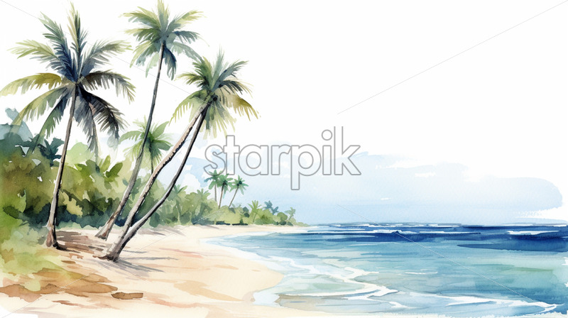 Home » Shop » Uncategorised » A tropical beach, in watercolor clipart style