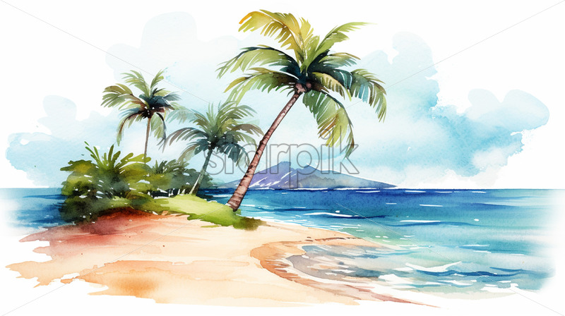 A tropical beach, in watercolor clipart style