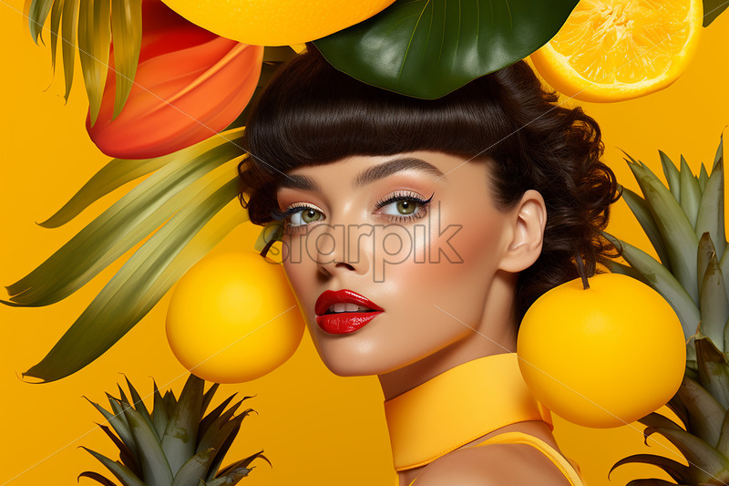 Collage of a beautiful caucasian girl posing at the camera. Expressing tenderness. Isolated background