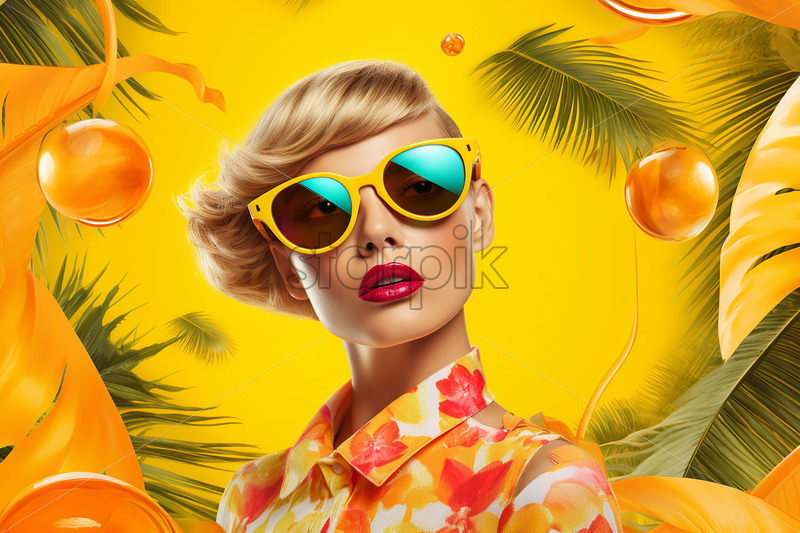 Home » Shop » people » A tropical collage with a woman on a yellow background