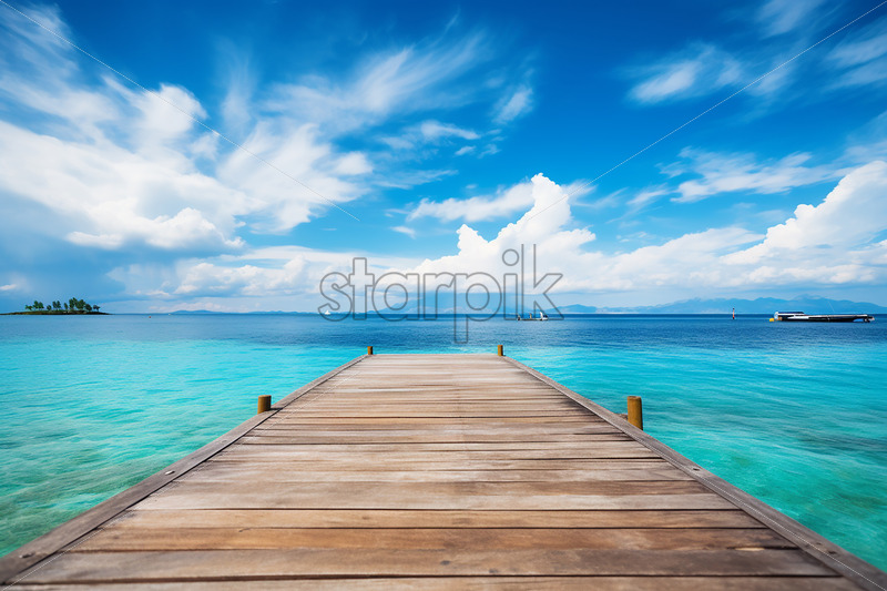 Home » Shop » Uncategorised » A tropical landscape, with a wood deck on the seashore