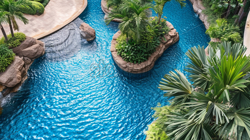 Home » Shop » Uncategorised » A tropical rest area with a swimming pool and palm trees