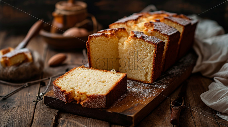 Home » Shop » Uncategorised » A vanilla cake on a wooden bottom cut into slices