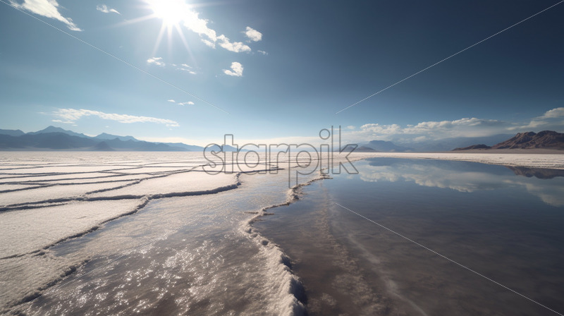 Home » Shop » Uncategorised » A vast salt flat extending in all directions, reflecting the intense sunlight