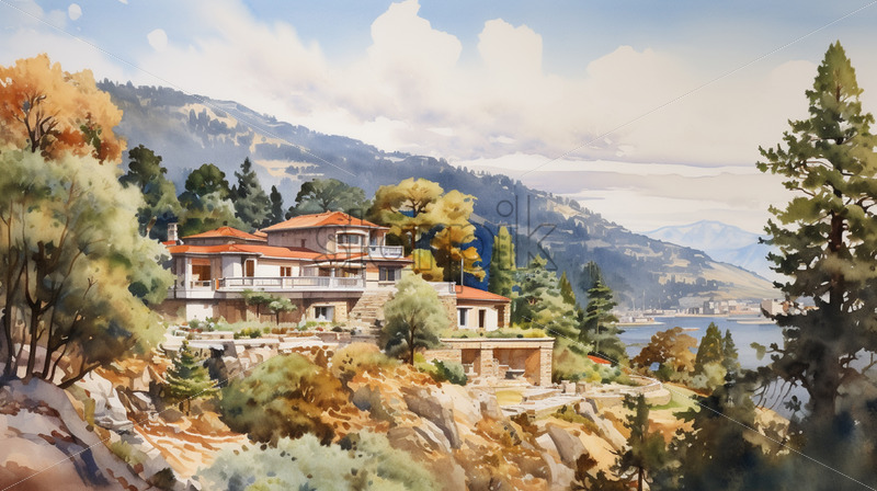 LOMBARDY, ITALY – AUGUST 03, 2018: Hotel Olivedo in a sunny day. View from shore. Varenna town Royalty Free Stock photo