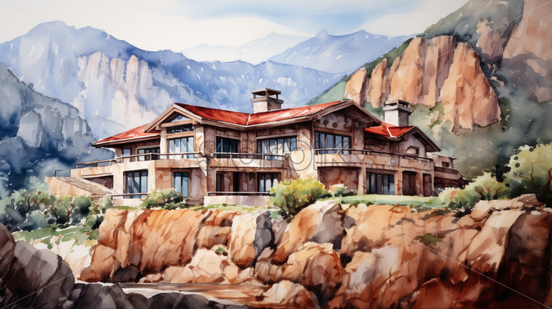 Villa Carlotta from Lake Como view. Green mountains and blue sky on background. Tremezzo, Italy Royalty Free Stock photo