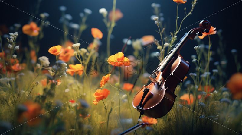 A violin in a wreath of flowers