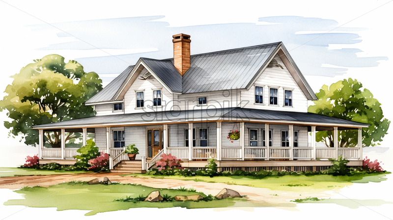 A watercolor illustration in clipart style with a house