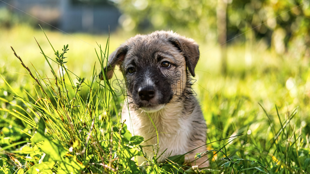 A pomeranian with yellow fur on the grass looking from one side to another Royalty Free Stock Video Footage Royalty Free Stock Video Footage