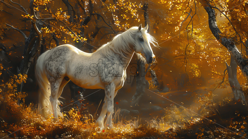 Path in a forest with multicolored trees along it in Massachusetts, USA