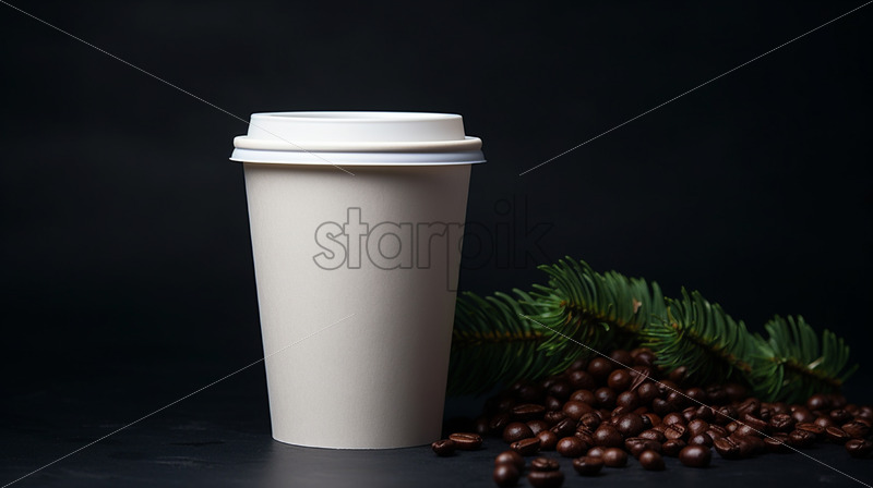 Large and small cup of coffee on a wooden table in a cafe. Recycling idea