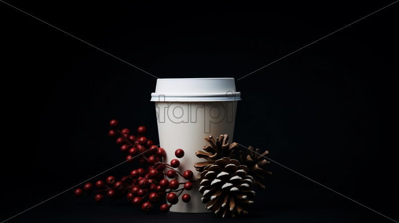 Large and small cup of coffee on a wooden table in a cafe. Recycling idea