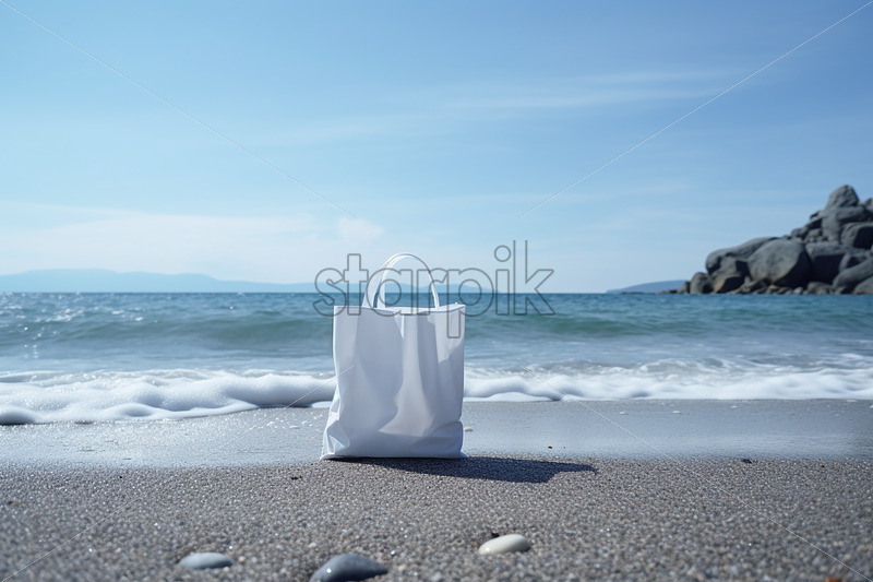 View of the Aegean sea coast in Greece. Long beach with an old trunk in the water, small waves, buildings in the distance Royalty Free Stock Video Footage Royalty Free Stock Video Footage