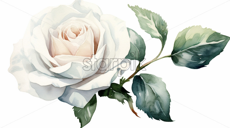 A pink rose on a white background in watercolor for the wedding, clipart style