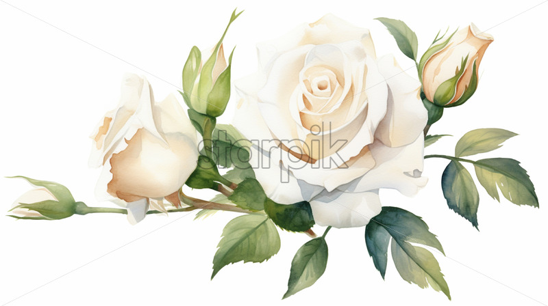 A pink rose on a white background in watercolor for the wedding, clipart style