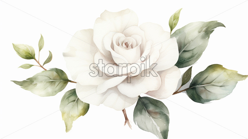 A pink rose on a white background in watercolor for the wedding, clipart style