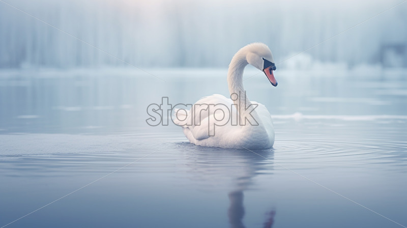 Home » Shop » Uncategorised » A white swan on a frozen lake in winter
