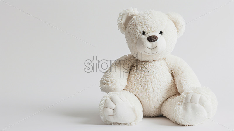 A white teddy bear on a white background