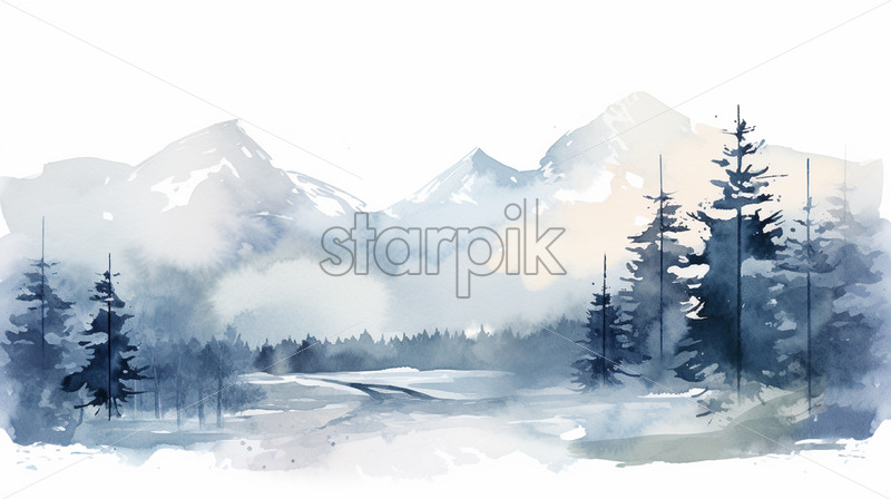 A winter mountain landscape in watercolor, clipart style