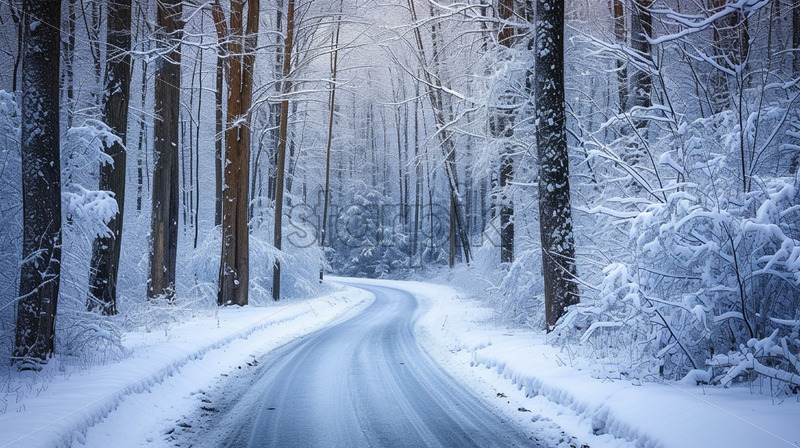 A winter road through the forest