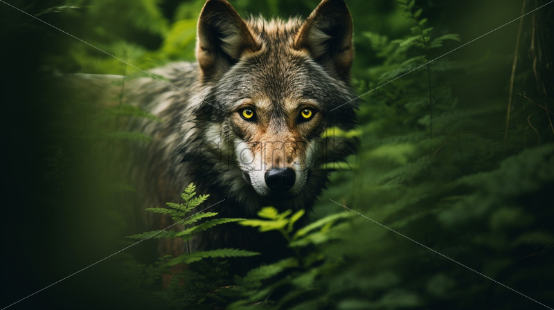 A wolf among the bushes in the forest