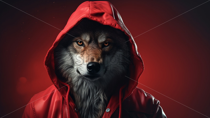 A wolf in a jacket with a red hood
