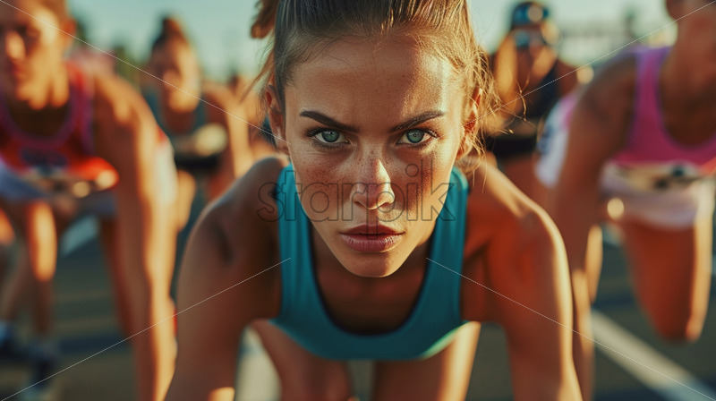 Woman with overweight in gray t-shirt and leggings exercising on a sports field in a park to lose weight. Fitness lifestyle