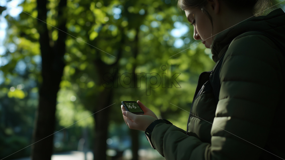 A woman checking her health stats on an elegant wearable device