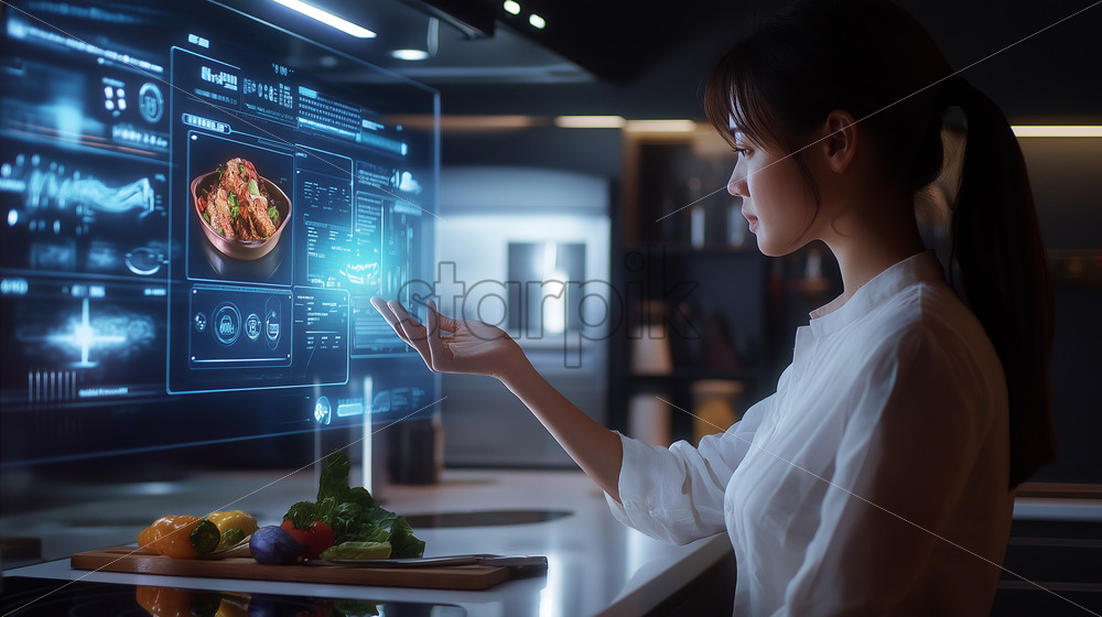 high-tech kitchen concept with a minimalist aesthetic and smart tech