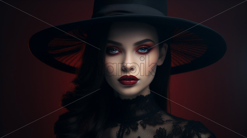Close-up shot of a young caucasian girl with curly long dark brown hair and bangs. Freckles on the face. Expressing tenderness. Isolated background