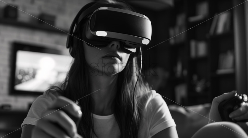 Home » Shop » Uncategorised » A woman playing a VR game, monochrome
