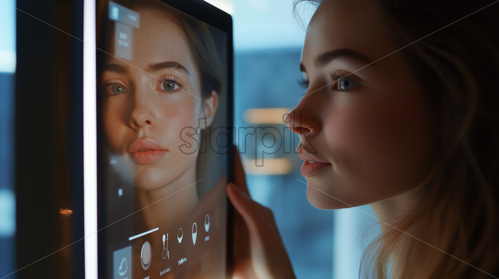 A woman relaxing on a sleek sofa, scrolling through a holographic social media interface