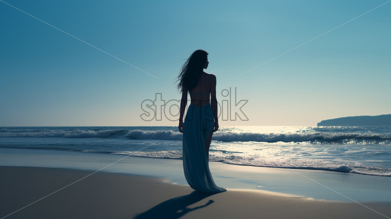 View of a single woman under umbrella sitting on a beach. Slow motion Royalty Free Stock Video Footage