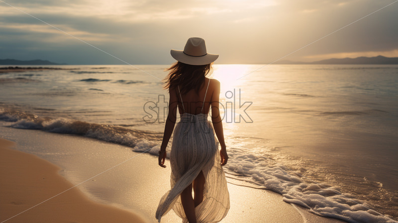 Young woman with backpack walking barefoot on the beach holding her shoes Royalty Free Stock Video Footage