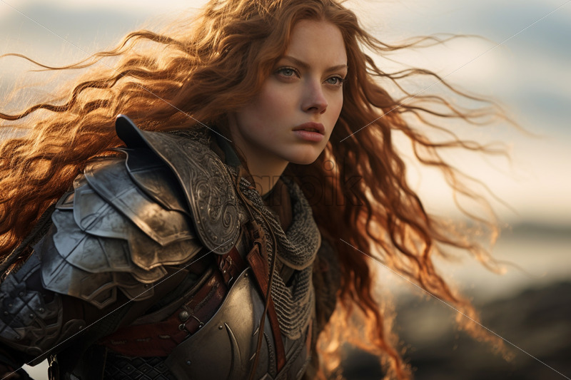 Home » Shop » Uncategorised » A woman with long red hair in armor on a battlefield