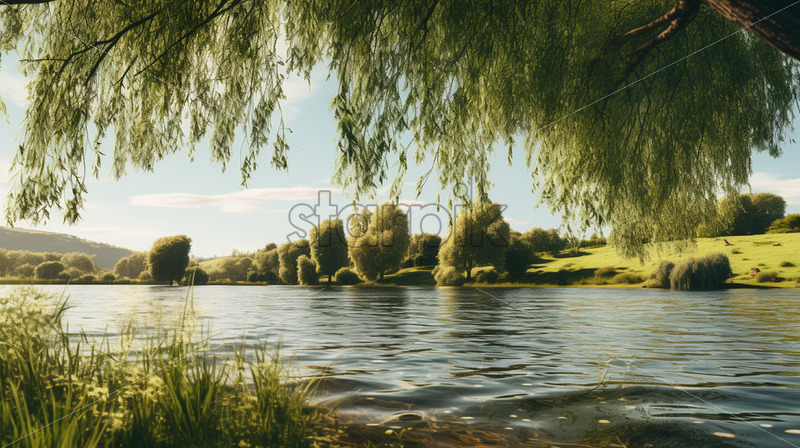 Home » Shop » Uncategorised » A wonderful landscape with a willow tree on the shore of a lake